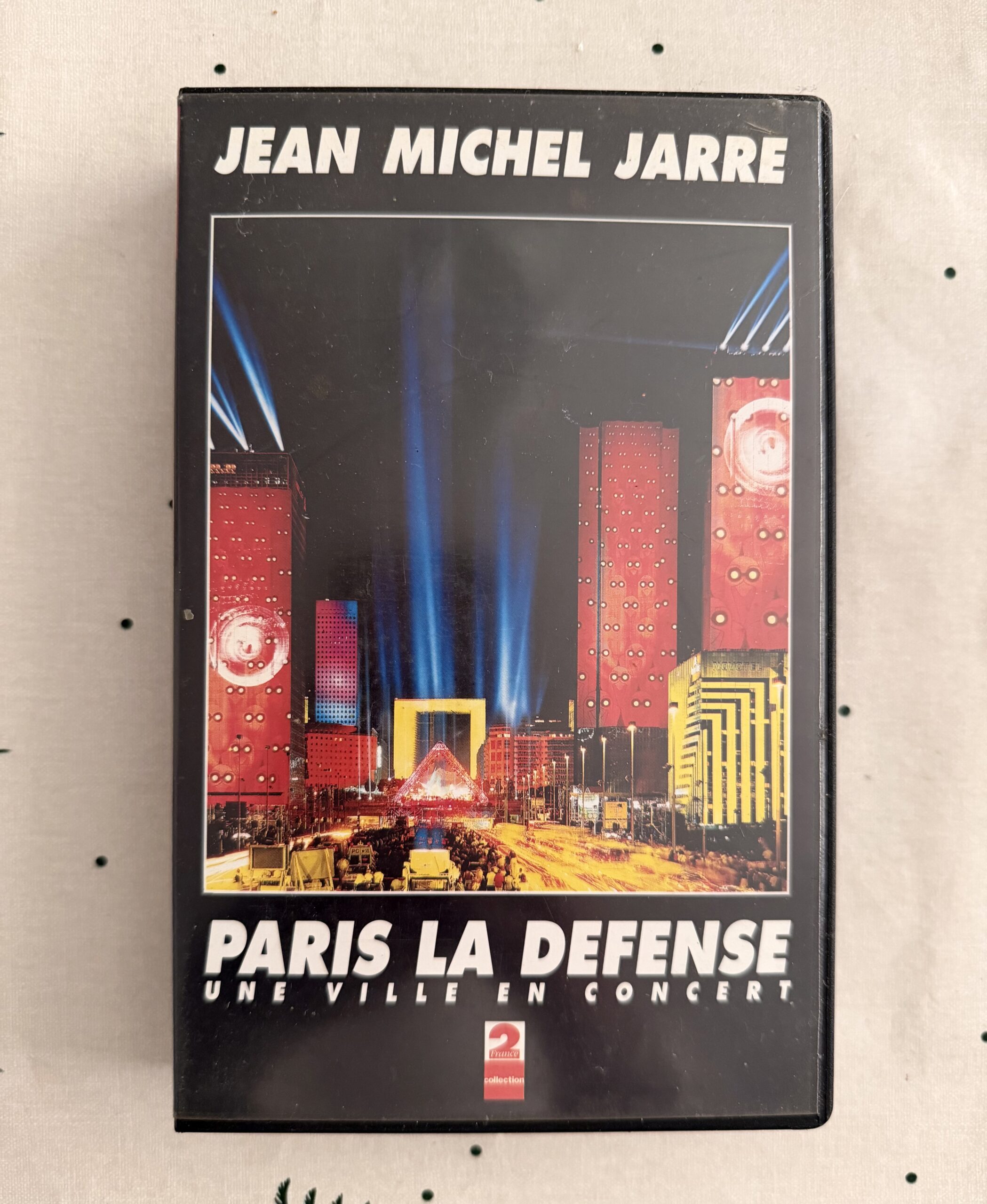 Plongez dans l’un des concerts les plus spectaculaires de l’histoire de la musique électronique avec cette cassette VHS. Jean-Michel Jarre y livre une performance exceptionnelle au cœur du quartier de La Défense, transformé pour l’occasion en une immense scène à ciel ouvert mêlant sons électroniques, lasers, projections et effets visuels impressionnants.