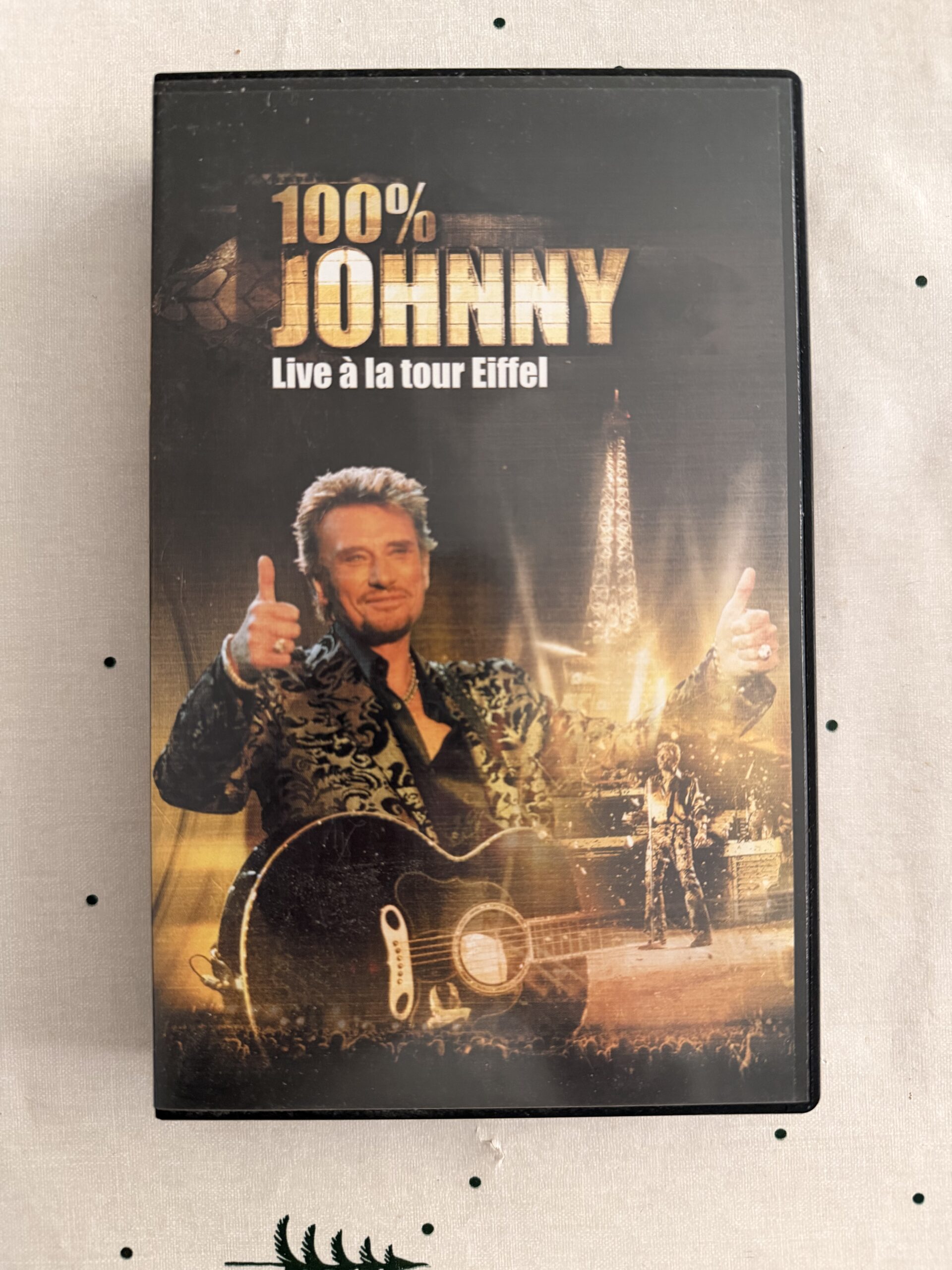 Revivez le concert événement de Johnny Hallyday à la Tour Eiffel avec la VHS 100 % Johnny. Un show mythique dans un lieu emblématique, retraçant toute la puissance scénique de l’icône du rock français.